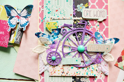 Материалы: Набор бумаги ММЕ, текстурная паста, эмалевые точки, хлопковая лента,шитье,кружево- цветочки,высечки,вырубка велосипед, спрей, блестки, пудра для эмбоссинга.