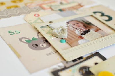 Для странички использовала бумагу и наклейки из коллекции Bundle of Joy (EchoPark), чипборд, деревянные украшения, в том числе сердечко и кружочек (WoodCraft), крафт-фотоаппарат (Maya Road), стикеры из чипборда (Crate Paper), дотсы (Prima).